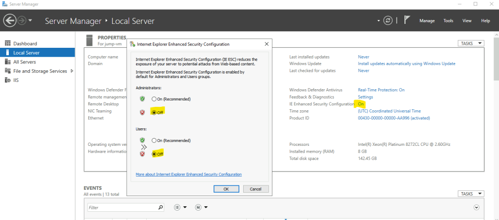 Toujours sur la même machine de Jump, pensez à désactiver le contrôle renforcé d’internet :