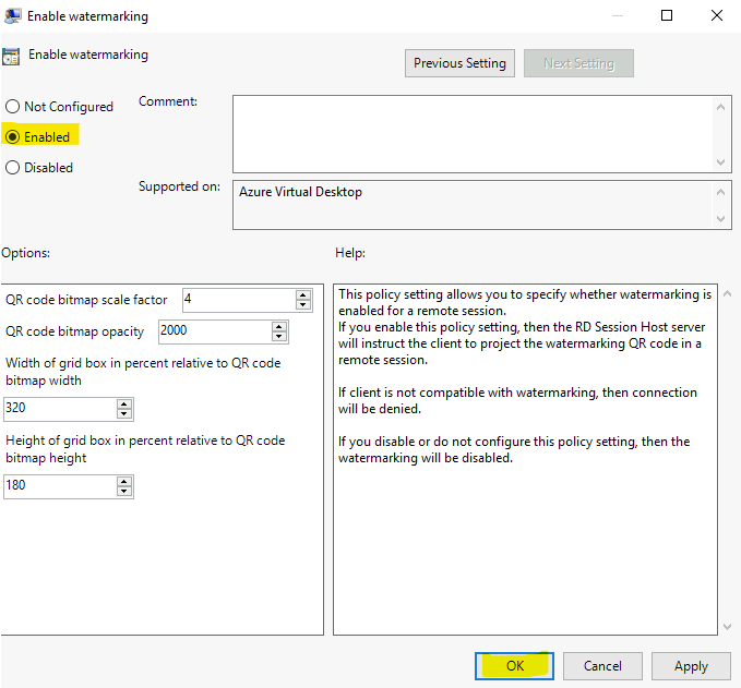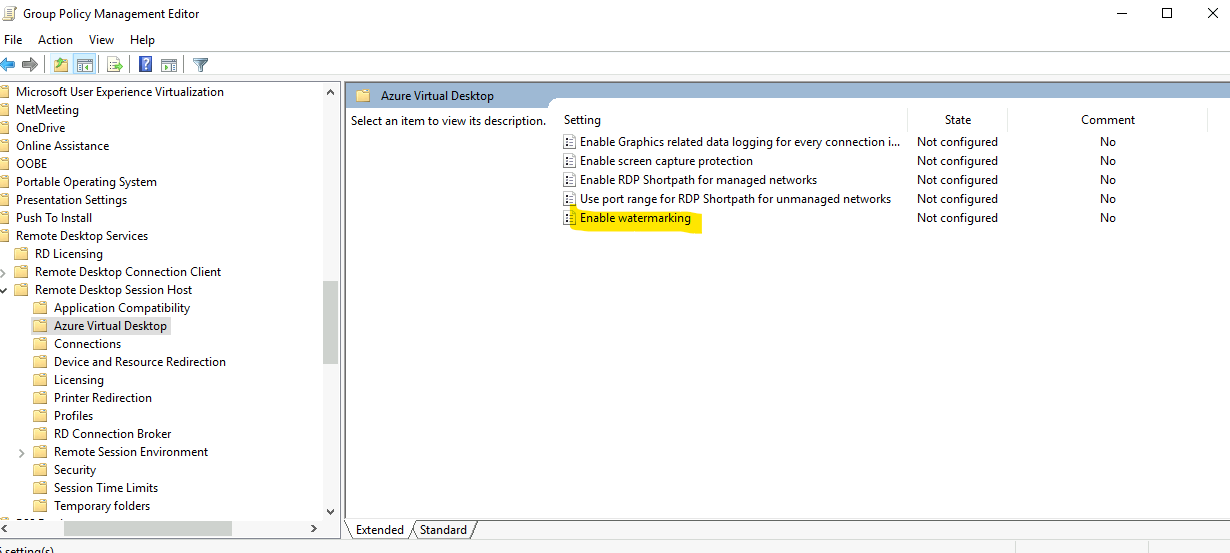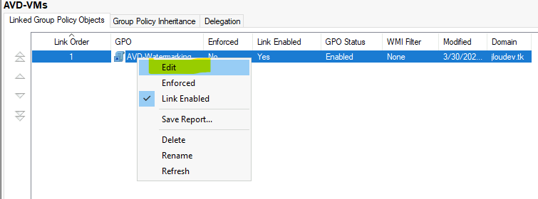 Editez votre GPO pour configurer le Watermarking AVD :