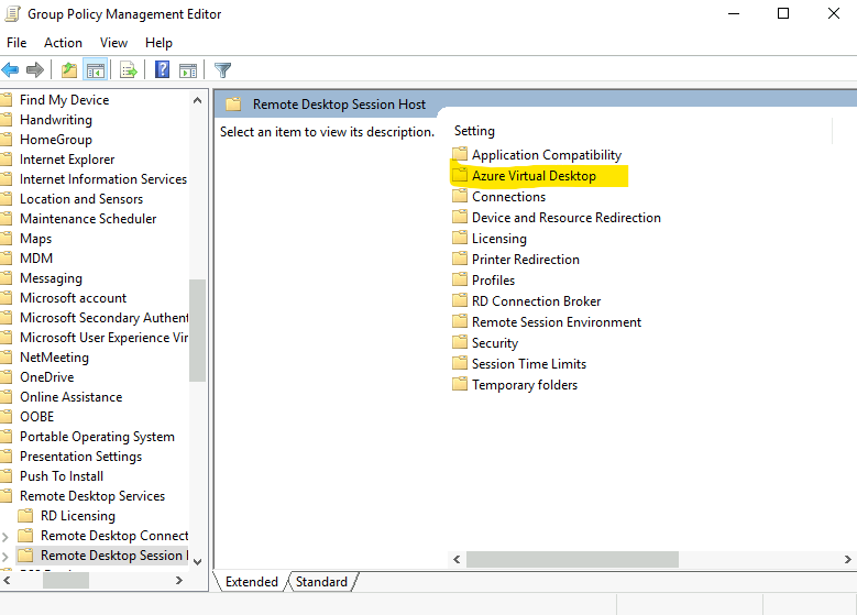Il est encore nécessaire de passer par une police locale ou via une police de groupe Active Directory. Voici d’ailleurs un lien vers le fichier de modèle administratif pour Azure Virtual Desktop.