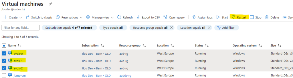 Quelques minutes plus tard, vérifiez que toutes vos machines AVD sont bien redémarrées et accessibles :
