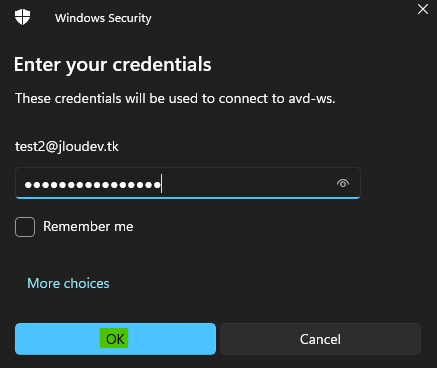 Entrez les identifiants d’un utilisateur AVD de test :