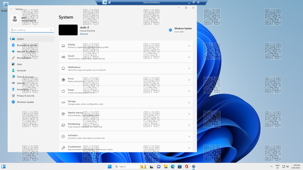 Dans le cadre d’Azure Virtual Desktop, un filigrane est apposé sur le bureau de session utilisateur AVD. Ce filigrane comporte un QR code comportant des informations utiles aux équipes IT pour retrouver la session et donc l’utilisateur à l’origine d’une fuite de données sensibles.
