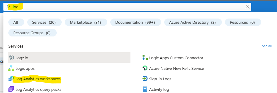 Pour cela, recherchez dans votre portail le service Log Analytics workspace :