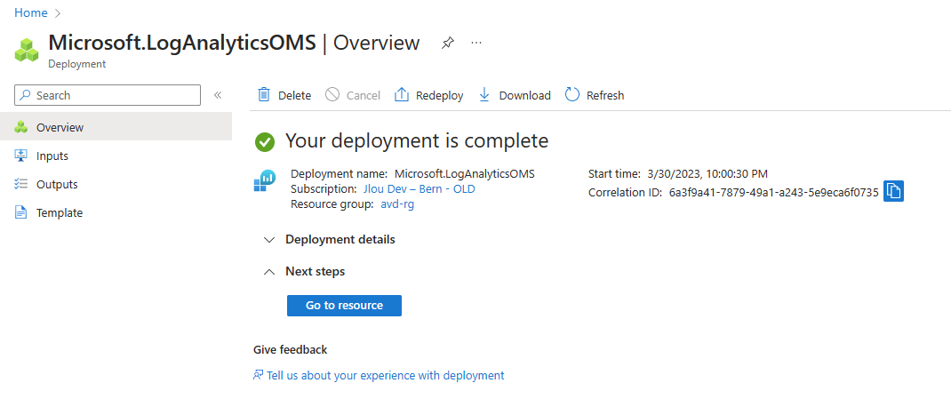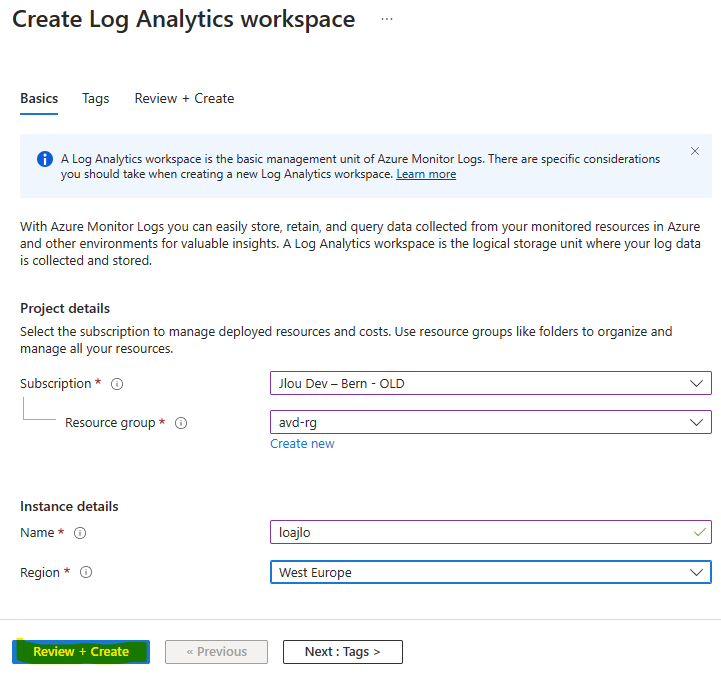 Créez votre Log Analytics workspace dédié à votre environnement AVD :