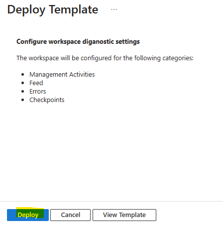 Cliquez sur Déployer pour installer la configuration du LAW à l’Espace de travail :