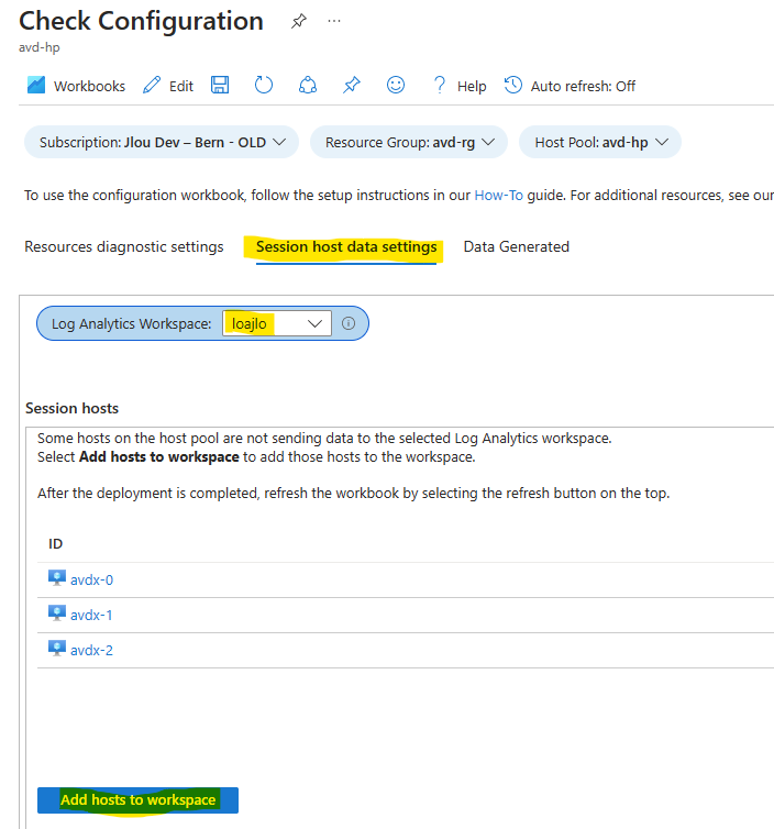 Continuez la configuration du LAW avec les machines virtuelles AVD en les ajoutant :
