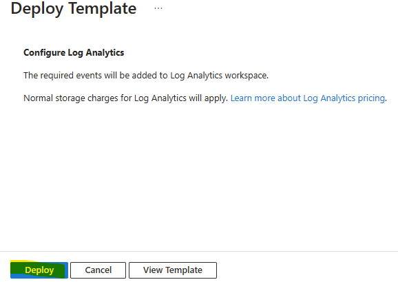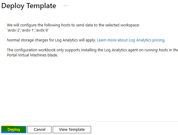 Cliquez sur Déployer pour installer la configuration du LAW des machines virtuelles :