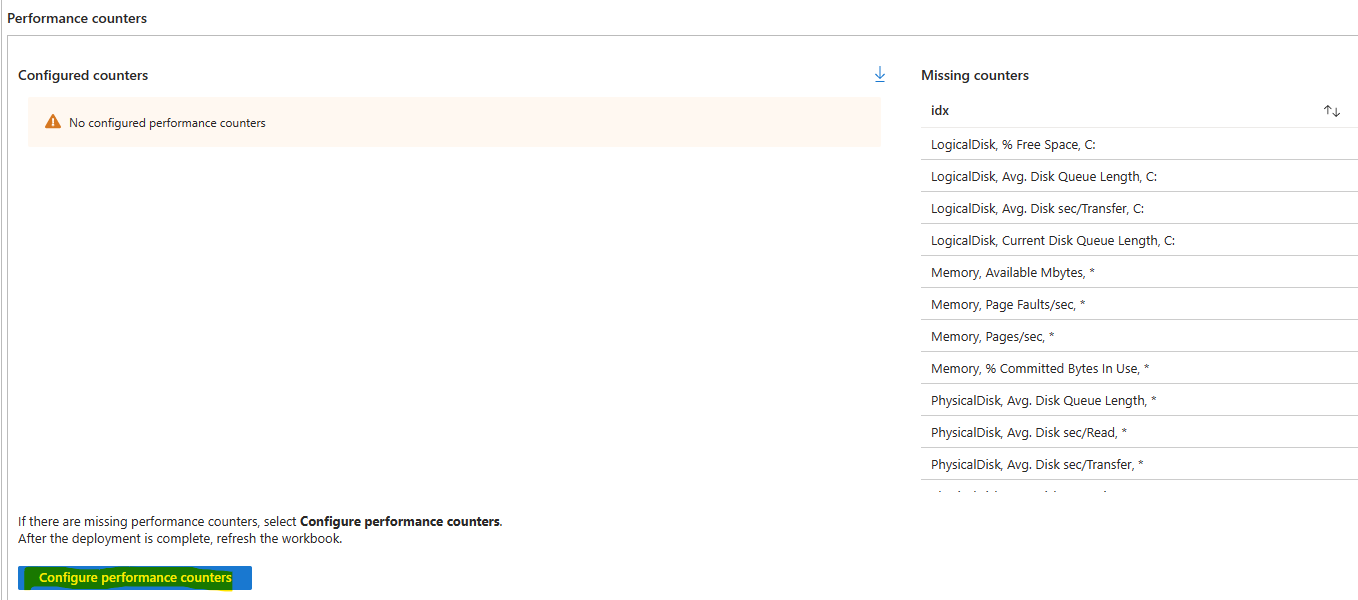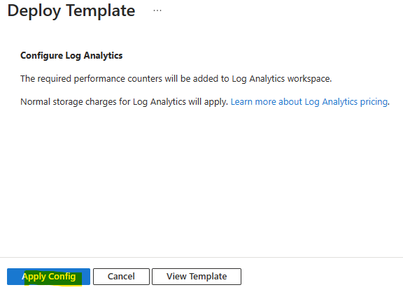 Cliquez sur Déployer pour installer la configuration du LAW des métriques de Performances Windows :