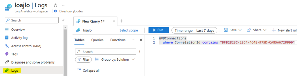 Allez dans le menu Logs, puis lancez la requête suivante :